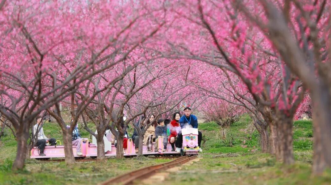 除了在梅园里走走拍拍,还可以乘坐小火车哐当哐当开进梅花林,风卷着花瓣落在肩头,别提有多惬意了。