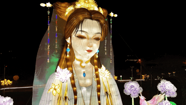 过年期间,问花村的花正处于盛花期,今年还增加了花海灯会,“青城山下白素贞”、“齐天大圣”等特色灯组错落分布,让游客感受蜀地文化的博大精深。