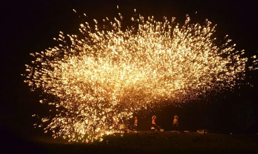 春节期间还有不定期的打铁花演出,给市民游客带去不一样的浪漫赏花之旅。